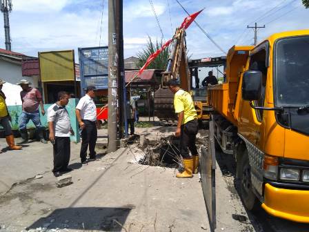 Begitu tiba di lokasi, belasan petugas Dinas PU pun langsung melakukan normalisasi. Dengan menggunakan cangkul dan sekop, mereka pun mengorek drainase yang telah mengalami penyempitan dan pendangkalan tersebut. Perlahan-lahan tanah yang menjadi pemicu pendangkalan dan penyempitan pun diangkat.