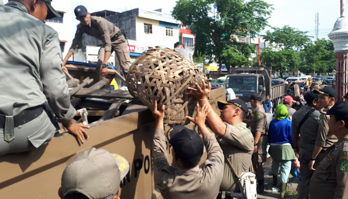 MEDAN, Eksisnews.com – Penertiban terhadap pedagang kaki lima (PK5) kembali dilakukan Satpol PP Kota Medan, Rabu (26/6). Penertiban ini dilakukan dalam rangka mendukung upaya penataan yang tengah dilakukan Pemko Medan sekaligus mengembalikan estetika kota. Di samping itu juga sebagai salah satu upaya mengurai kemacetan.