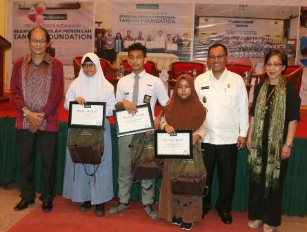 Selanjutnya, Wakil Wali Kota dan Dewan Penasihat Tanoto Foundation Hermanto Tanoto, Ketua Yayasan Bhakti Tanoto Margaretha Ari Widowati menyaksikan penandatanganan beasiswa sekolah Tanoto Foundation dengan mitra sekolah. Kemudian dilanjutkan dengan penyerahan sertifikat dan marchendise secara simbolis kepada 3 orang penerima beasiswa Tanoto Foundation yakni Diny Aulya Fitri dari SMP Dr Wahidin Sudirogusodo, Jenry Wandiko Sitopu dari SMA Letjen Haryono MT serrta Yutri yang berasal SMK Brigjen Katamso Medan.(ENC-1)