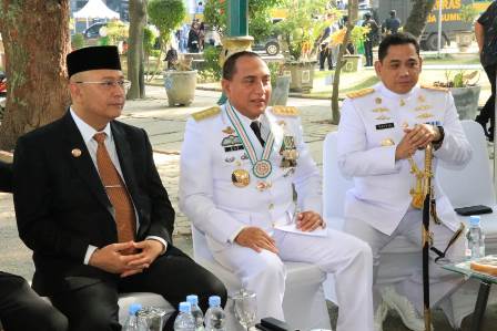 Upacara yang mengusung tema, “Dengan Semangat Promoter Pengabdian Polri Untuk Masyarakat, Bangsa dan Negara” berlangsung tertib dan penuh khidmat itu turut juga dihadiri Kapolda Sumut Irjen Pol Agus Andrianto, Pangdam I/BB Mayjen TNI MS Fadhilah, Wakapolda Sumut Brigjen Pol Mardiaz Kusin, Kepala BNN Sumut Brigjen Pol Atrial serta unsur Forkopimda Sumut dan Kota Medan lainnya, tokoh masyarakat, tokoh pemuda serta roganisasi masyarakat.