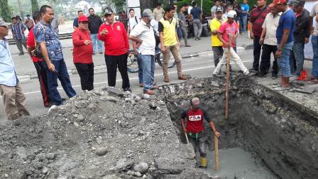 Proses pengorekan berjalan dengan lancar, tanpa kesulitan 2 unit backhoe loader berhasil mengorek badan jalan. “Setelah pengoreklan yang dilakukan selesai, kita akan meletakkan box culvert di dalamnya. Fungsi box culvert ini sebagai ganti gorong-gorong yang berfungsi sebagai saluran air. Apabila pembuatan crossing selesai, insya Allah genangan air tidak akan terjadi lagi karena telah disalurkan menuju Sungai Deli melalui box culvert,” kata Wakil Wali Kota.