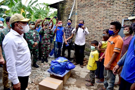 Gubernur menyerahkan langsung bantuan paket sembako tersebut kepada 2 kepala keluarga yang rumahnya mengalami kerusakan dihantam angin puting beliung. Rumah keduanya masing-masing mengalami kerusakan pada bagian atap rumah, bahkan sebagian terbang terbawa angin.