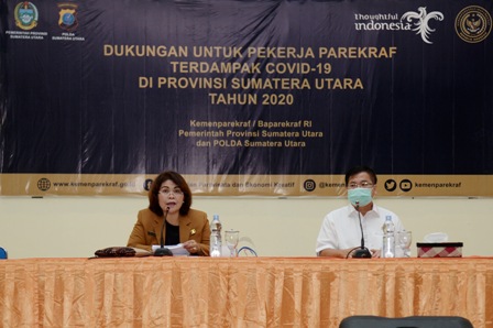 Kepala Dinas Kebudayaan dan Pariwisata Sumut Ria Telaumbanua mengatakan secara resmi penyerahan dan pendistribusian bantuan ini akan dilakukan oleh Kementerian Pariwisata dan Ekonomi Kreatif RI kepada Gubernur dan Kapolda Sumut, Kamis (2/7).