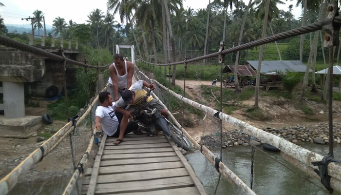 Warga masyarakat di tujuh desa ini pun mengandalkan jembatan gantung ini sejak April 2019 sebagai penghubung utama dengan dunia luar.