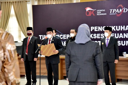 EKSISNEWS.COM,Medan – Gubernur Sumatera Utara (Gubsu) Edy Rahmayadi mengukuhkan 29 Tim Percepatan Akses Keuangan Daerah (TPAKD) kabupaten/kota. Diharapkan TPAKD tersebut dapat bekerja dengan nyata, serta mendorong percepatan pemulihan perekonomian daerah di masa pandemi Covid-19.