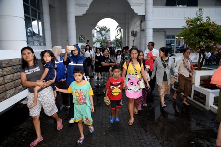 MEDAN, Eksisnews.com – Sebanyak 36 warga Sumatera Utara (Sumut) yang menjadi korban bencana sosial di Wamena, Papua, tiba di Kota Medan, Rabu (9/10/2019). Mereka disambut langsung oleh Gubernur Sumatera Utara (Gubsu) Edy Rahmayadi dan dijamu makan, di Aula Raja Inal Siregar, Lantai 2, Kantor Gubernur, Jalan Pangeran Diponegoro, Nomor 30, Medan.