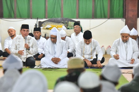 “Saya mengharapkan tuan-tuan, jemaah, khususnya kepada Pak Gubernur dan Wakil Gubernur marilah kita lanjutkan persahabatan dan kerja sama dalam mengemban amanah dalam pemerintahan maupun Illahi,” kata Syekh Irfansyah.