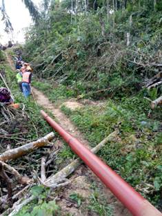 Dijelaskannya, pembangunan infrastruktur Jaringan Tegangan Menegah (JTM) 20 kV tentu memerlukan kondisi tanah yang bebas dari hambatan berupa pohon maupun bangunan. “Medan jalan yang berbatu, menanjak dan berkelok menjadi tantangan utama kami dalam mengangkut tiang besi seberat melebihi 750 Kg untuk ukuran Panjang 12 Meter,” ungkapnya.