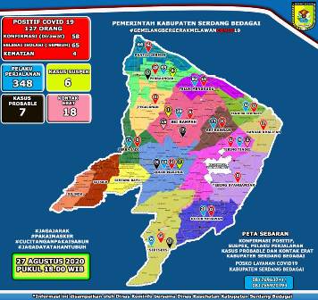 Pertambahan kasus, baik positif dan sembuh, mengubah angka di peta sebaran Kabupaten Sergai menjadi 127 kasus.