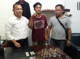 Iptu Tambunan menjelaskan, dari tersangka Randi pihaknya mengamankan sejumlah barang bukti berupa 1 buah plastik klip ukuran sedang berisikan narkotika jenis sabu, 1 buah plastik klip ukuran kecil berisikan narkotika jenis sabu, 4 buah plastik klip kosong, 28 buah mancis lengkap dengan jarumnya, 12 unit bong sabu yang terbuat dari botol kaca kecil, 1 gunting, 3 buah kaca pirex, 7 buah karet dodot, 8 buah skop sabu yang terbuat dari pipet sedotan sabu.