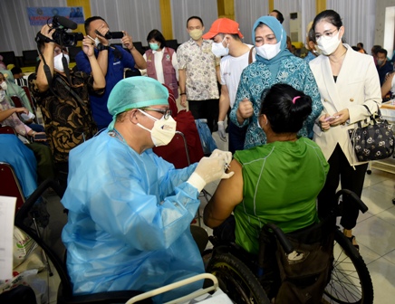 “Vaksinasi ini untuk orang dengan kebutuhan khusus (disabilitas), kita juga vaksinasi keluarganya, sebab kalau tidak begitu kekebalan di keluarganya tidak akan tercapai, ” kata Ketua TP-PKK Sumut Nawal Lubis.