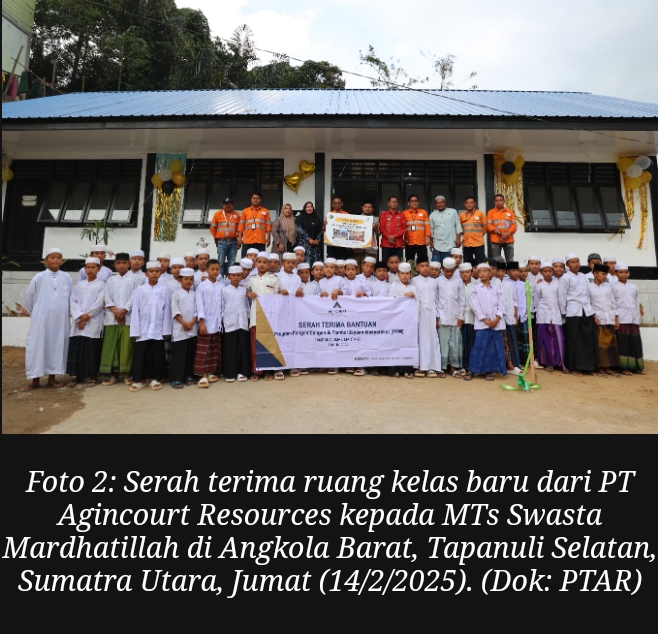 EKSISNEW.COM, Tapanuli selatan – PT Agincourt Resources, pengelola Tambang Emas Martabe, membangun dan merenovasi ruang kelas di lima sekolah yang tersebar di empat kecamatan di Tapanuli Selatan, yakni SMP Negeri 2 Batang Toru, SDN No. 100301 Pargarutan di Angkola Timur, SDN No. 101303 Batu Godang di Angkola Sangkunur, SMA Negeri 1 Angkola Barat, dan MTs Swasta Mardhatillah di Angkola Barat. Pembangunan senilai total Rp1,45 miliar ini menjadi bagian dari upaya PTAR dalam mendukung pengembangan kualitas pendidikan di wilayah sekitar tambang.