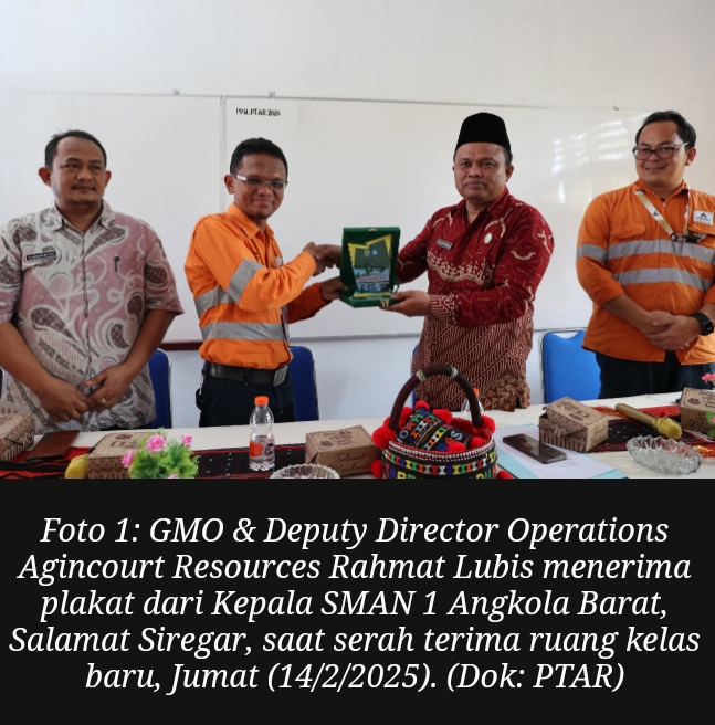 EKSISNEW.COM, Tapanuli selatan – PT Agincourt Resources, pengelola Tambang Emas Martabe, membangun dan merenovasi ruang kelas di lima sekolah yang tersebar di empat kecamatan di Tapanuli Selatan, yakni SMP Negeri 2 Batang Toru, SDN No. 100301 Pargarutan di Angkola Timur, SDN No. 101303 Batu Godang di Angkola Sangkunur, SMA Negeri 1 Angkola Barat, dan MTs Swasta Mardhatillah di Angkola Barat. Pembangunan senilai total Rp1,45 miliar ini menjadi bagian dari upaya PTAR dalam mendukung pengembangan kualitas pendidikan di wilayah sekitar tambang.