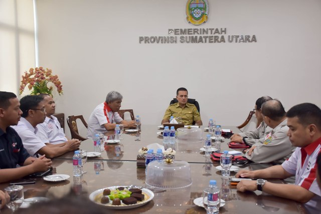 “Mewakili Pemerintah Provinsi Sumatera Utara saya mengucapkan terima kasih Bapak Ahmad Irawan dan Koransyah, yang telah mendonorkan darahnya sebanyak 100 kali dengan tulus dan ikhlas. Ini merupakan pengorbanan yang luar biasa,” ujar Wagubsu saat menerima audiensi Drs Ahmad Irawan dan Koransyah bersama Pengurus Palang Merah Indonesia (PMI) Provinsi Sumatera Utara dan Kota Medan di Ruang Rapat Wagubsu Lt IX Kantor Gubernur Sumut, Selasa (22 /1/2019).