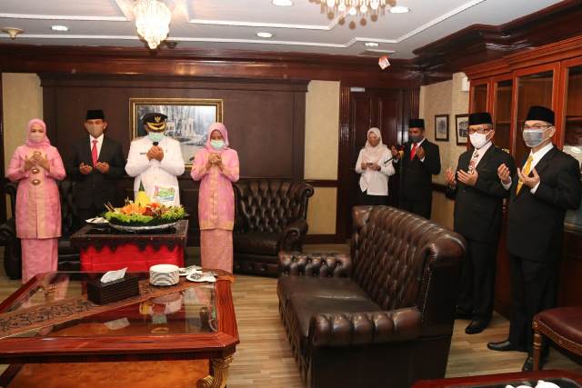 EKSISNEWS.COM, Medan – Hari Jadi Kota Medan ke-430 tahun 2020 dilakukan secara virtual, Rabu (1/7/2020). Melalui Command Center Balai Kota Medan, Pelaksana tugas (Plt) Wali Kota Medan Ir H Akhyar Nasution MSi bertindak sebagai inspektur upacara. Peringatan Dirgahayu Tanah Melayu Deli ini diikuti unsur forum koordinasi pimpinan daerah (Forkopimda), Plt Ketua TP PKK Kota Medan Ny Hj Nurul Khairani Akhyar, Ketua Dharma Wanita Persatuan (DWP) Kota Medan Ny Ismiralda Wiriya Al Rahman, kepala organisasi perangkat daerah (OPD) di lingkungan Pemko Medan serta camat se-Kota Medan.