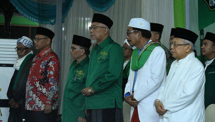 “Alhamdulillah, hari ini Allah SWT memberi kita kesempatan untuk bersilaturahmi. Pertemuan ini tentunya atas berkah dan rahmat Allah SWT yang memiliki kehendak atas segalanya. Termasuk keberagaman, ketentraman serta kedamaian yang kita dapat rasakan hari ini semuanya berkat rahmat Allah SWT. Untuk itu, marilah kita perbanyak rasa syukur kepada-Nya,” kata KH Ma’aruf Amin.
