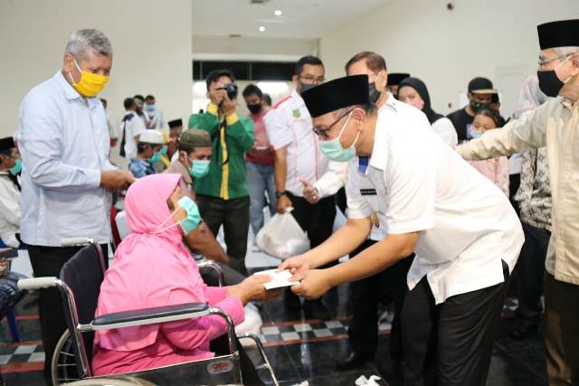 EKSISNEWS, Medan – Pelaksana tugas (Plt) Wali Kota Medan Ir H Akhyar Nasution MSi  menyalurkan zakat kepada ustadz/ustadzah, guru honorer, bilal mayat, penjaga masjid dan kaum dhuafa yang bermukim di Kelurahan Dwi Kora, Kecamatan Medan Helvetia. Penyaluran zakat yang berasal dari para muzaki (pemberi zakat) baik dari Apratur Sipil Negara (ASN) maupun masyarakat ini dilaksanakan di Millenium Plaza, Rabu (8/7/2020). Diharapkan, zakat yang diberikan tersebut  dapat memberikan manfaat bagi para mustahiq (penerima zakat), terutama di tengah  keterpurukan ekonomi menyusul pandemi Corona Virus Disease 2019 (Covid-19) saat ini.