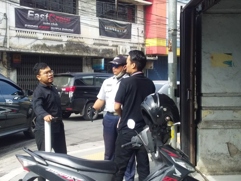 EKSISNEWS.COM, Medan – Petugas Dinas Perhubungan Kota Medan membuat riuh didepan kantor LBH Medan karena melarang kendaraan parkir diatas trotoar bagi personil LBH Medan sehingga membuat pelayanan bantuan hukum kepada masyarakat terganggu dan tidak nyaman pada Jumat (25/5/2023).