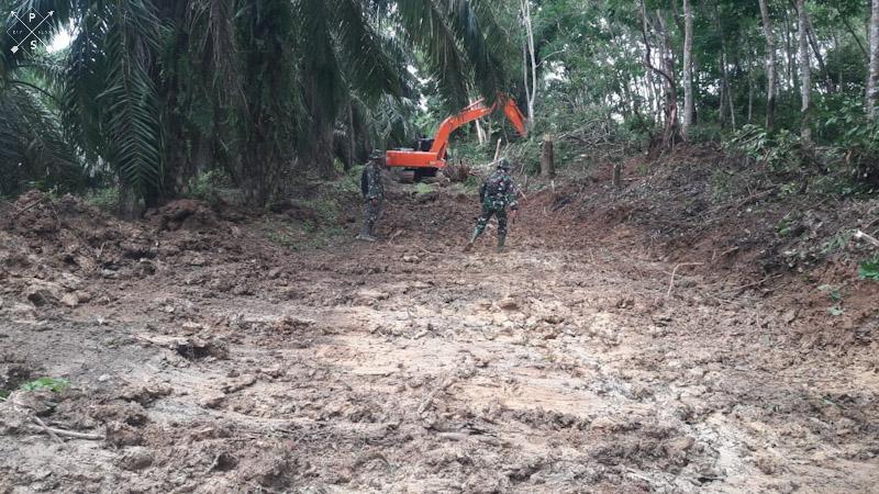 Dengan melihat kondisi medan, disamping TNI dan masyarakat pengerjaan jalan juga didukung oleh 2 alat berat Exacavator dan Buldozer yang setiap hari bekerja menebas belahan hutan dengan medan ekstrem.