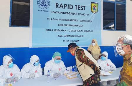 Antisipasi Covid-19, Pemkab Sergai- PT Aqua Farm Nusantara Rapid Test 2.200 Karyawan