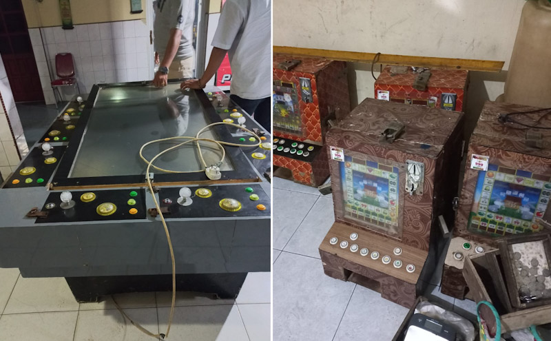 “Dari 2 lokasi tempat perjudian yang didatangi, ditemukan 1 unit mesin judi ikan-ikan dan 5 mesin judi dindong. Untuk pemain dan operator tidak ada, karena tidak sedang beroperasi,” kata Kompol Agustiawan.