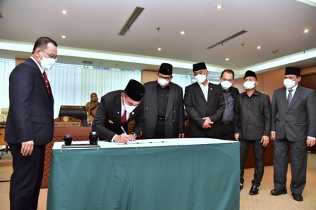 EKSISNEWS.COM, Medan –DPRD Sumatera Utara (Sumut) melalui rapat paripurna telah menyepakati sekaligus mensahkan Anggaran Pendapatan dan Belanja Daerah (APBD) Provinsi Sumut Tahun 2022, Senin (29/11/2021). Hal itu ditandai dengan penandatanganan persetujuan bersama oleh Gubernur Sumut Edy Rahmayadi dan Ketua DPRD Sumut Baskami Ginting.