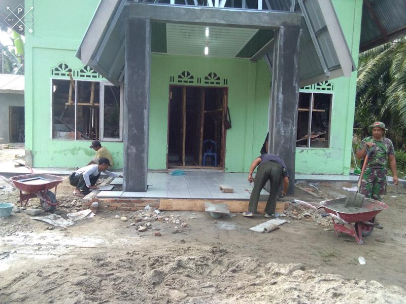 Dilokasi terpisah masih di Kec Sei Lepan personel Satgas merehab Masjid Raya Baiturrahman, dengan hasil 51 %.”Saat ini Satgas melaksanakan pemasangan keramik lantai dalam kamar mandi, Alhamdulilah rehab Mesjid berjalan lancar berkat gotong royong Satgas dan warga,”sebut Dansatgas.