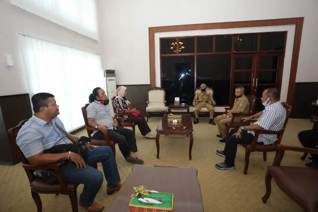 EKSISNEWS.COM, Kisaran – Bupati Asahan didampingi oleh Kepala Dinas Kominfo kabupaten Asahan menerima audiensi Asosiasi Musik Asahan (Aman) di Ruang Kerja Bupati Asahan, Selasa (02/06/2020)
