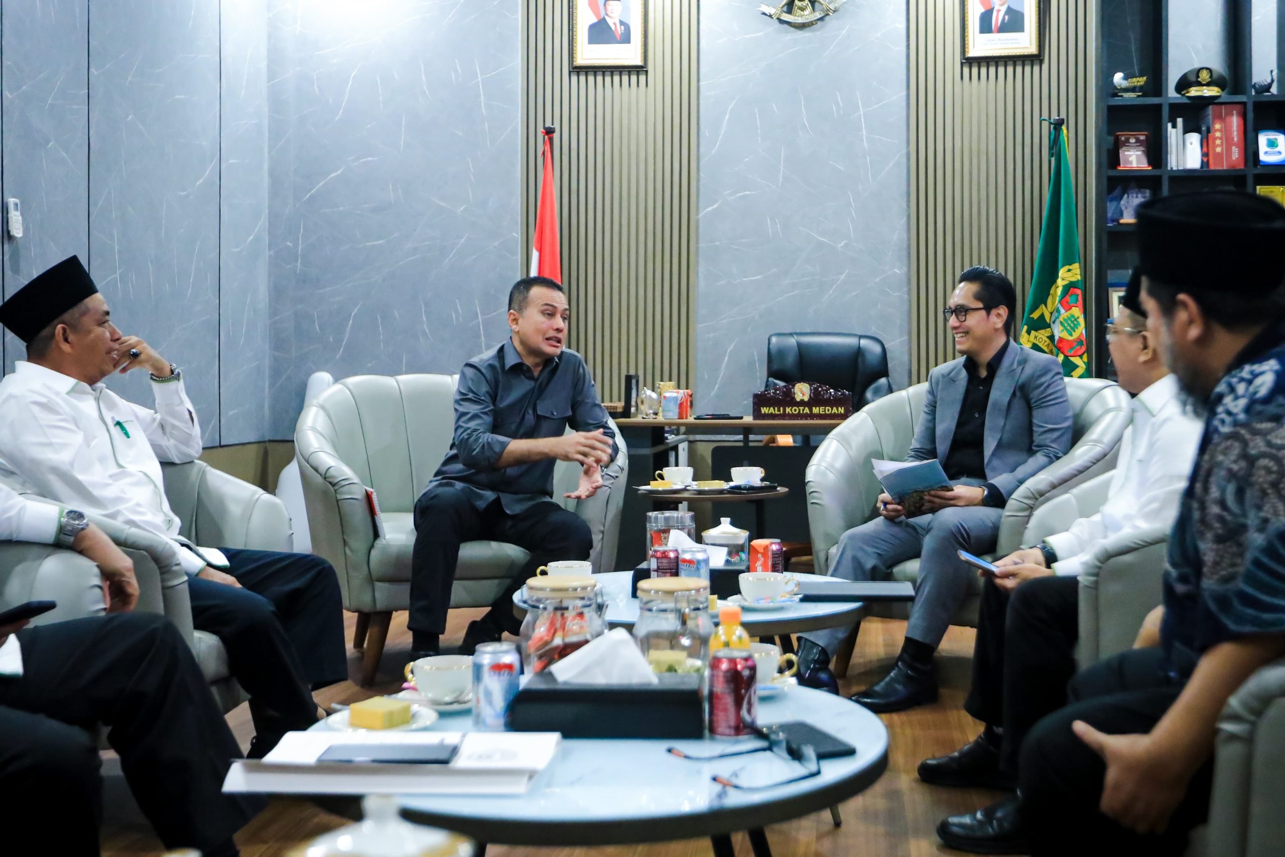 EKSISNEWS.COM, Medan – Wali Kota Medan Rico Tri Putra Bayu Waas menerima audiensi Ketua Palang Merah Indonesia (PMI) Kota Medan, Musa Rajecksah di rumah dinas Wali Kota, jalan Sudirman, Senin (7/7/25). Selain bersilaturahmi kehadiran PMI Kota Medan ini juga untuk menyampaikan program yang akan dijalankan PMI Kota Medan.