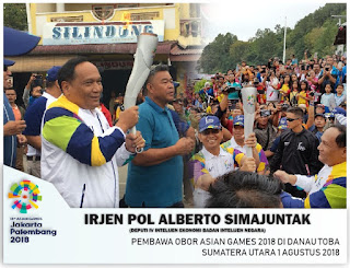 Api abadi Asian Games tersebut, mulai diarak dari Rumah Pengasingan Bung Karno, di Parapat. Dipercaya sebagai salah satu pembawa Api Obor, Irjen Pol Alberto Simanjuntak yang mewakili Kepala BIN mengungkapkan rasa bangga dan terkesima atas sambutan masyarakat Sumatera Utara yang luar biasa.