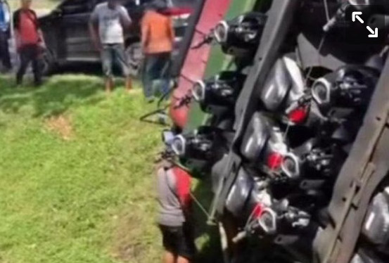 Dikatakannya, truk pengangkut puluhan sepeda motor tersebut bukan terguling melainkan masuk parit.
