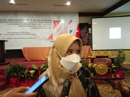 “Kalau rawan semua rawan, karena posisinya cuma terbatas,” kata Ketua Bawaslu Sumut, Syafrida R Rasahan usai pembukaan sosialisasi hasil evaluasi pengawasan partisipasi Pilkada tahun 2020, peluncuran buku riset evaluasi pilkada serentak tahun 2015-2020 dan penandatanganan perjanjian kerjasama Bawaslu Provinsi Sumut dengan stake holders, Kamis (25/3/2021) di Hotel Emerald Garden Medan.