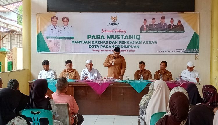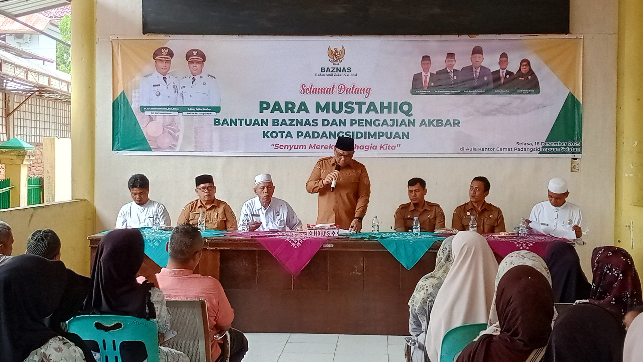 Sementara itu, Ketua Baznas Kota Padangsidimpuan, Drs.H Zainal Arifin Tampubolon, dalam laporannya menyampaikan bahwa bantuan Baznas dan Pengajian Akbar Kota Padangsidimpuan disalurkan kepada masyarakat di beberapa kecamatan. Di Kecamatan Padangsidimpuan Selatan, bantuan diberikan kepada 47 orang, Kecamatan Padangsidimpuan Hutaimbaru sebanyak 78 orang, dan Kecamatan Padangsidimpuan Tenggara sebanyak 67 orang, yang sebagian besar merupakan mustahik dan warga terdampak banjir dan longsor.