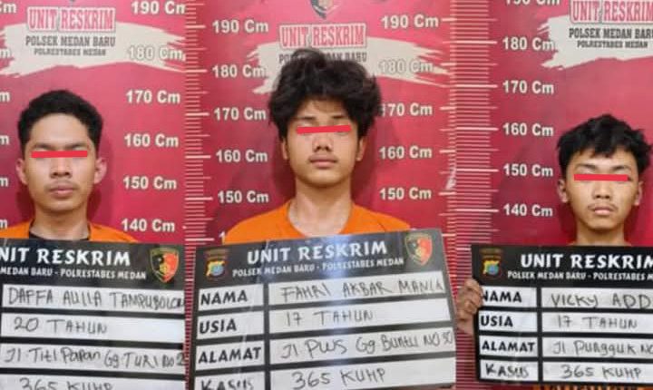 EKSISNEWS.COM, Medan – Aksi para begal yang bikin resah warga Medan akhirnya terhenti. Unit Reskrim Polsek Medan Baru berhasil meringkus tiga pelaku pembegalan dan pencurian dengan kekerasan (curas) yang kerap beraksi di sejumlah titik di wilayah hukum Polsek Medan Baru.
