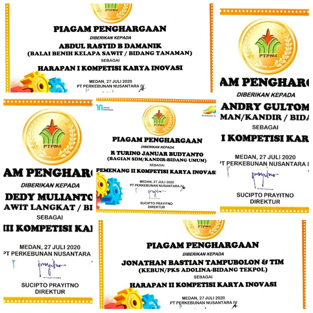 Sementara Kepala Bagian Sekretariat Perusahaan Riza Fahlevi Naim mengatakan, baru-baru ini manajemen PTPN IV telah memberikan penghargaan kepada pemenang kompetisi karya inovasi. Karya inovasi ini merupakan perbaikan-perbaikan yang bisa dilakukan untuk peningkatan kinerja perusahaan.