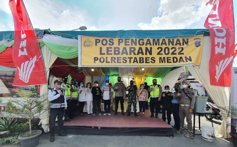 EKSISNEWS.COM, Medan – Dalam rangka Ops Ketupat Toba 2022 sekaligus menyambut Hari Raya Idul Fitri 1443 H, Muspika Kecamatan Percut Sei Tuan mengunjungi Pos Pam VI Aksara di Jalan Wiliam Iskandar Sp.Aksara, Kecamatan Percut Sei Tuan, Jumat (29/4/2022).
