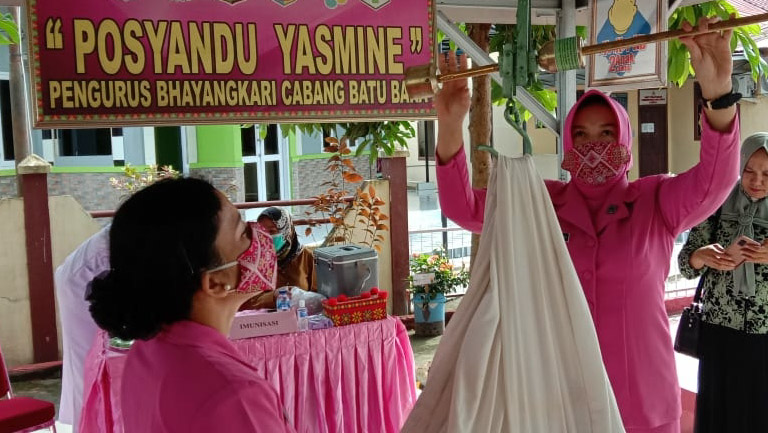 Ketua Bayangkari Ny. Henny Ikhwan , yang diwakili Wakil Ketua Bayangkari Ny.Dona Rudi Chandra dan didampingi Ketua Kesehatan Ny. Heni Wahidin, menjelaskan kepada awak media bahwa pada kegiatan tersebut melakukan penimbangan umum dan pemberian vaksin imunisasi kepada para Balita usia satu bulan sampai empat tahun