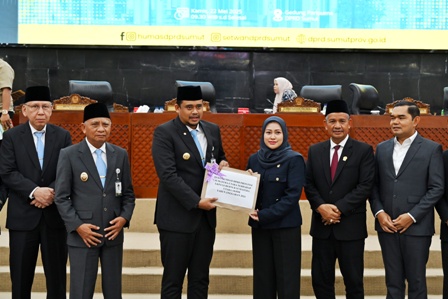 “Kami mengapresiasi kepada para Pimpinan dan segenap Anggota DPRD yang terhormat, atas rekomendasi yang telah disampaikan hari ini dan tentunya menjadi masukan yang strategis bagi kami dalam menjalankan tata kelola pemerintahan dalam pelaksanaan pembangunan daerah di tahun-tahun yang mendatang,” ujar Bobby, dalam rapat yang dipimpin Ketua DPRD Sumut Erni Ariyanti dan seluruh Wakil Ketua Dewan.