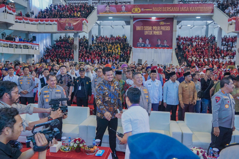 Kehadiran Bobby Nasution dan Wakapolri beserta unsur Forkopimda Sumut dan Kota Medan, termasuk Pj Gubernur Sumut Mayjen TNI (Purn) Hasanuddin disambut penuh meriah ribuan masyarakat diiringi lagu Indonesia Pusaka yang dibawakan dengan apik dan penuh semangat oleh juara Indonesian Idol tahun 2019 yakni Lyodra Ginting.