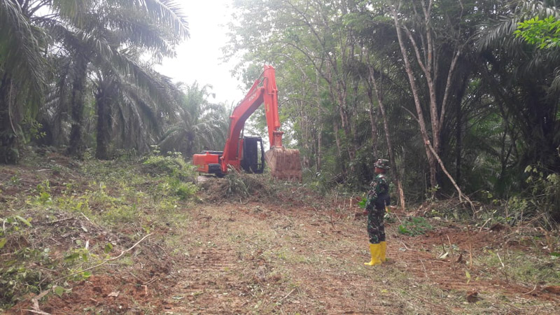 EKSISNEWS.COM, Langkat – Pembukaan badan jalan sepanjang 3000 meter di Dusun V Cinta Maju Desa Lama Kecamatan Hinai Kabupaten Langkat, Kodim 0203/Langkat mengerahkan alat berat.