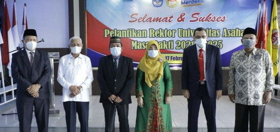 EKSISNEWS.COM, Kisaran – Ketua Yayasan Universitas Asahan Drs. H. Mapilindo resmi melantik Prof. Dr.Drs.H. Tri Harsono, MSi menjadi Rektor Universitas Asahan masa bakti 2021 – 2025 sesuai dengan Surat Keputusan Pengurus Yayasan Universitas Asahan No. 01 Tahun 2021 tentang Pengangkatan dan Pengesahan Rektor Universitas Asahan, acara dilaksanakan di aula FKIP Universitas Asahan, Rabu (17/02/2021).