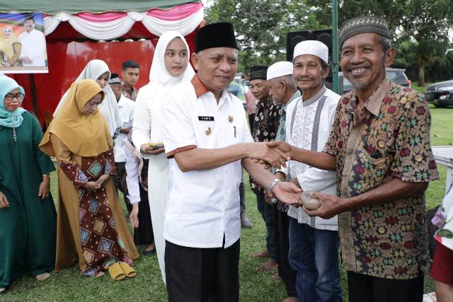 Sebelum memberikan bimbingan dan arahannya Bupati Asahan bersama dengan Ketua TP PKK Kabupaten Asahan memberikan kacamata gratis dan beras kepada kaum dhuafa dan anak yatim.