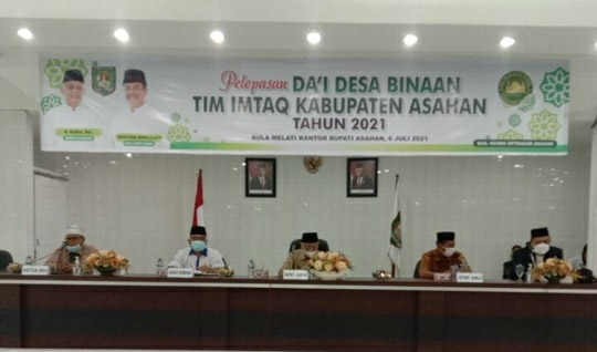 EKSISNEWS.COM, Kisaran – Bupati Asahan H. Surya, BSc, Selasa (06/07/2021) melepas Da’i Desa Binaan Tim Imtaq Kabupaten Asahan Tahun 2021 yang berlangsung di aula Melati Kantor Bupati Asahan.