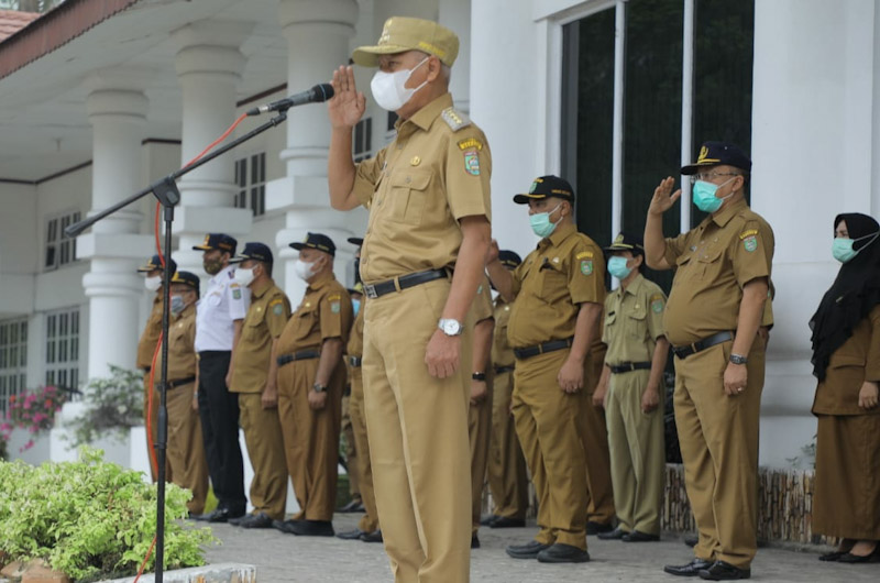 EKSISNEWS.COM, Kisaran – Bupati Asahan, H. Surya, BSc pimpin upacara Apel Gabungan di Lingkungan Pemerintah Kabupaten Asahan Perdana di Tahun 2021 bertempat dihalaman Kantor Bupati Asahan, Senin (04/01/2021).