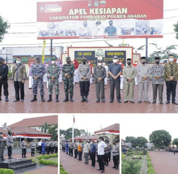 Pada pelaksanaan apel ini Bupati Asahan H. Surya, BSc yang didampingi Wakapolres Asahan Kompol Sri Juliani Siregar SH menyampaikan amanat tertulis Kapolres Asahan AKBP Nugroho Dwi Karyanto SIK yang mengatakan kegiatan apel percepatan vaksinasi dan penambahan vaksinator ini dilakukan guna percepatan pelaksanaan vaksinasi kepada masyarakat Kabupaten Asahan, untuk itu mari kita sama-sama mengajak dan menjadi pelopor kegiatan vaksinasi massal sampai tingkat kelompok masyarakat yang terpencil di daerah Kabupaten Asahan.