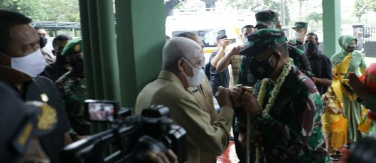 EKSISNEWS.COM, Kisaran – Bupati Asahan H. Surya Bsc menyambut Kunjungan Kerja (Kunker) Pangdam I Bukit Barisan (BB) Mayjen TNI Hassanudin beserta istri dan rombongan di Markas Kodim (Makodim) 0208/Asahan, Senin (11/01/2021).