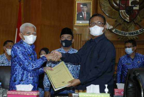 Dikesempatan ini juga Bupati Asahan menyerahkan Ranperda Tentang RPJMD Kabupaten Asahan Tahun 2021-2026 kepada Ketua DPRD Kabupaten Asahan disaksikan oleh Wakil Ketua DPRD Kabupaten Asahan, Anggota DPRD Kabupaten Asahan, OPD dan tamu undangan lainnya. (ENC-Akm)
