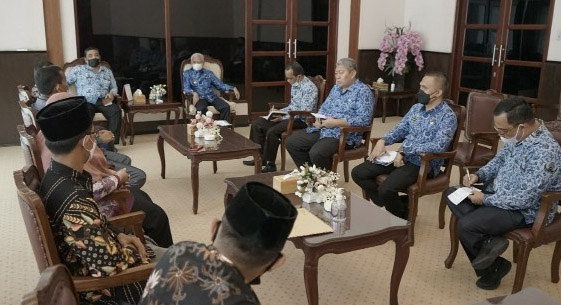 EKSISNEWS.COM, Kisaran – Bupati Asahan H. Surya, BSc didampingi Asisten Administrasi Pembangunan Khaidir Afrin, SE, Kepala Bappeda, Kaban Kesbangpol, Kadis Kominfo (mewakili) menerima Audenasi Pengurus Majelis Daerah Korps Alumni Himpunan Mahasiswa Islam (KAHMI) Kabupaten Asahan, Kamis (17/06/2021).