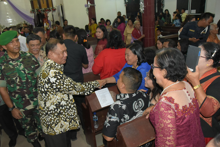 LUBUK PAKAM, Eksisnews.com – Di malam pergantian tahun, Bupati Deli Serdang H Ashari Tambunan dan Wakil Bupati HM Ali Yusuf Siregar meninjau perayaan ibadah umat kristiani di sejumlah gereja yang ada di Kecamatan Lubuk Pakam, Selasa (31/12) Malam.