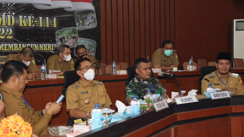 EKSISNEWS.COM, Labusel – Melalui Video Conference, TNI AD kembali menggelar Rapat Koordinasi Teknis (Rakornis) TNI Manunggal Membangun Desa (TMMD) Reguler ke-114 Tahun Anggaran 2022. Dalam hal ini *calon Dandim 0209/LB* Letkol Inf M. Faizal Rangkuti, S.IP., M.IP, mendampingi Bupati Labuhanbatu Selatan H. Edimin, mengikuti kegiatan tersebut yang bertempat di Ruang Rapat Command Center Smart Regency Kantor Bupati Labusel Lantai II, Jalan Lintas Sosopan Kecamatan Kotapinang Kabupaten Labuhanbatu Selatan, Selasa (19/07/2022).